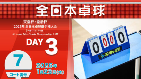 【見逃し配信】2025年全日本卓球選手権大会【3日目:1/23】:コートNo. 07