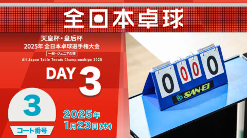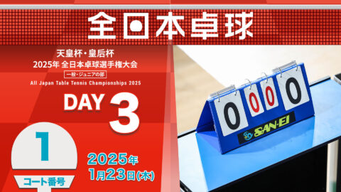 【見逃し配信】2025年全日本卓球選手権大会【3日目:1/23】:コートNo. 01