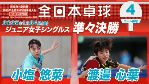 【見逃し配信】2025年全日本卓球選手権大会【4日目:1/24】:ジュニア女子準々決勝 小塩悠菜 vs 渡邉心葉(コートNo.04)