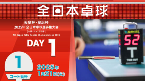 【見逃し配信】 2025年全日本卓球選手権大会【1日目:1/21】:コートNo. 01