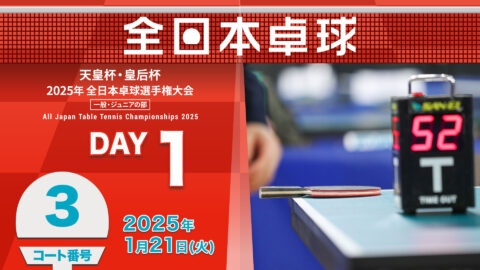 【見逃し配信】2025年全日本卓球選手権大会【1日目:1/21】:コートNo. 04