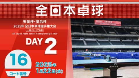 【見逃し配信】2025年全日本卓球選手権大会【2日目:1/22】:コートNo. 16