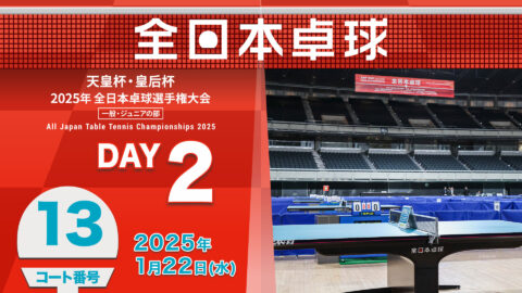 【見逃し配信】2025年全日本卓球選手権大会【2日目:1/22】:コートNo. 13