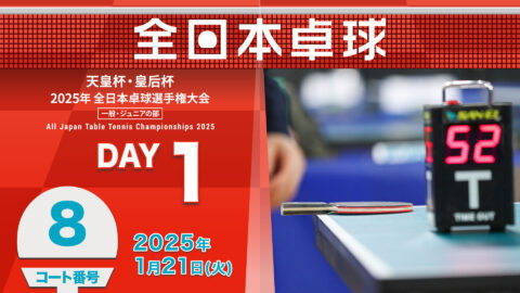 【見逃し配信】2025年全日本卓球選手権大会【1日目:1/21】:コートNo. 08