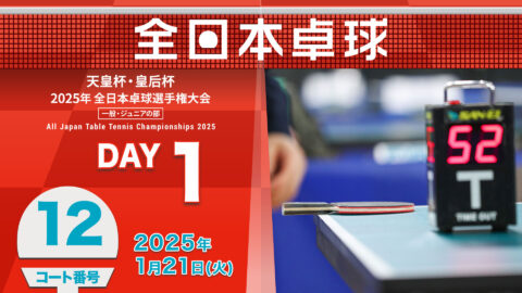 【見逃し配信】2025年全日本卓球選手権大会【1日目:1/21】:コートNo. 12