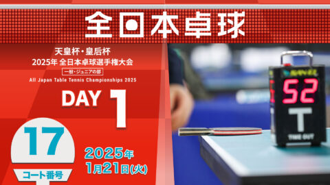 【見逃し配信】2025年全日本卓球選手権大会【1日目:1/21】:コートNo. 17
