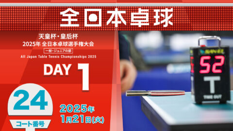 【見逃し配信】2025年全日本卓球選手権大会【1日目:1/21】:コートNo. 24